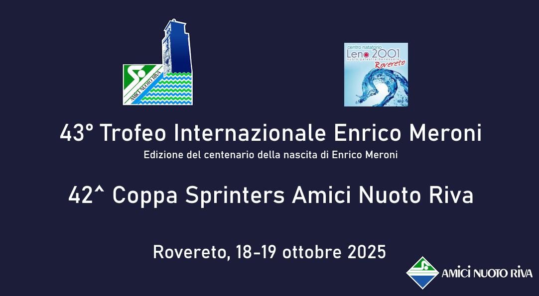 La stagione indoor del nuoto italiano in vasca corta riprende a Rovereto con la 43esima edizione consecutiva del Trofeo internazionale Enrico Meroni e 42a Coppa Sprinter Amici Nuoto Riva, il più longevo evento natatorio regionale e il più prestigioso del Trentino, organizzato da Amici Nuoto Riva in collaborazione con Leno 2001, che uniscono nuovamente le forze dopo la positiva esperienza nel portare in scena il Rovereto Swim Meeting lo scorso giugno. Quest’anno si tratterà dell’edizione del centenario della nascita di Enrico Meroni. Inoltre Amici Nuoto Riva e Trofeo Meroni hanno deciso di aderire al progetto di Italia dei Giochi, promosso nell’ambito delle Olimpiadi e Paralimpiadi di Milano Cortina 2026