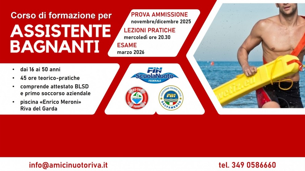 Il 36° Corso di formazione per Assistenti Bagnanti - Lifeguard (piscine), valido per il rilascio del Brevetto professionale della Federazione Italiana Nuoto Sezione Salvamento è l'unico riconosciuto dal CONI e dall'I.L.S. (INTERNATIONAL LIFE SAVING) ed ha validità nelle 113 Nazioni aderenti all'organizzazione mondiale.